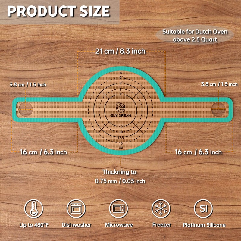 GUYDREMAT Bread Sling - Perfect Silicone Baking Mat for Sourdough Bread Baking – Superior Cast in Iron Dutch Oven Liner, 2 Pieces with Storage Band in GUY DREAM Classic Pack