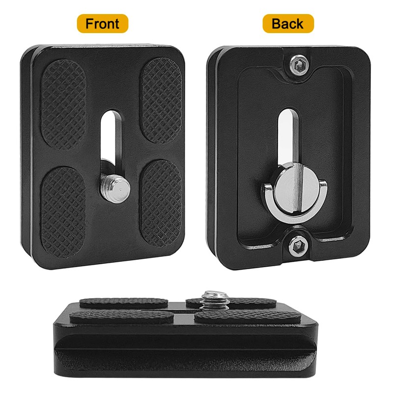 - Premium Material: The quick release plate is made of premium aluminium alloy material. The surface is finely oxidized, durable and strong. With standard 1/4" and 3/8" screw, and the screws on the quick release mount bottom could help you install faster, can serve you for long time.
