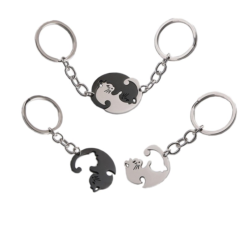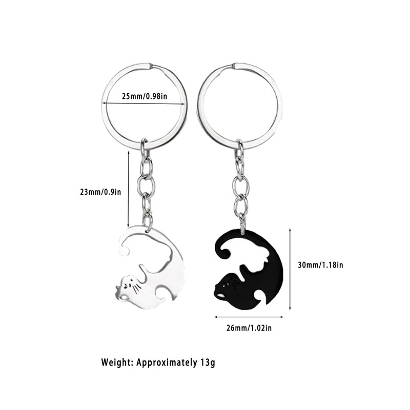 - Couple Keychain: Well crafted stainless steel matching keychain; Smooth sturdy and adorable surface; Two cats embracing each other symbolize the intimate and eternal relationship between you and your partner