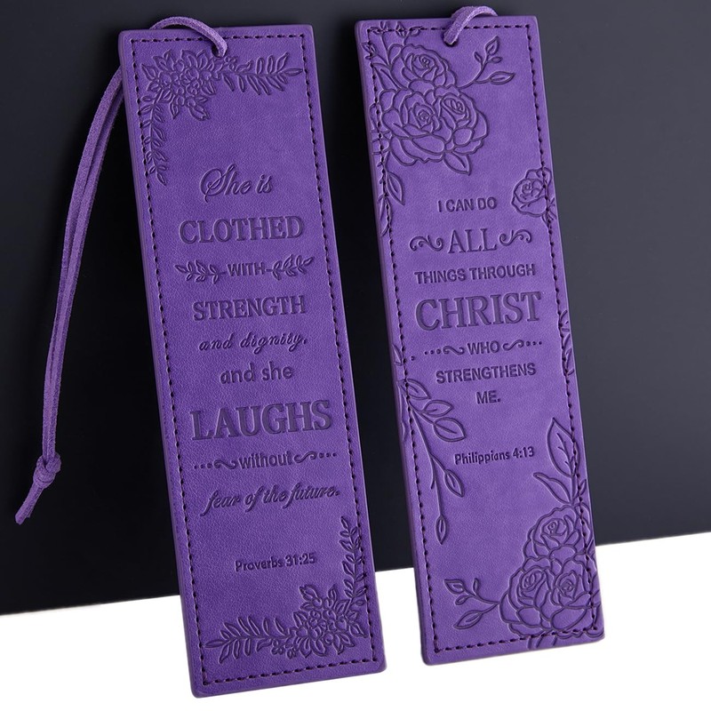 2 Pcs Christian Leather Bookmarks for Women, Purple Christian Gifts for Women Book Marks for Reading Women (Purple)