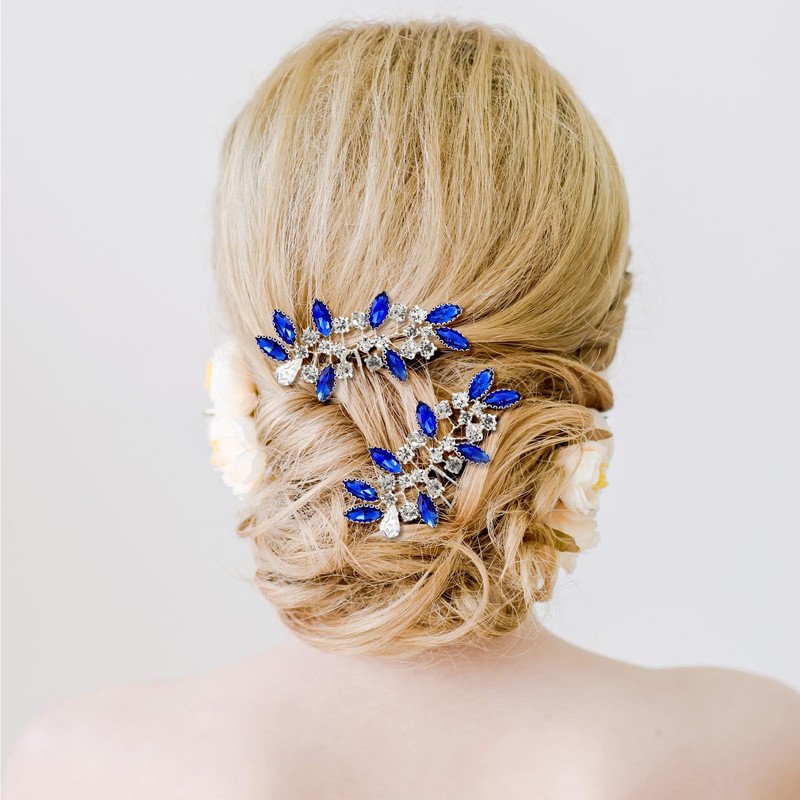 - Package Content: Includes 2 blue crystal bridal hair pins, each crafted with excellent workmanship. Use them together for a bold look or separately for subtle elegance, adding sparkle to your hairstyle.