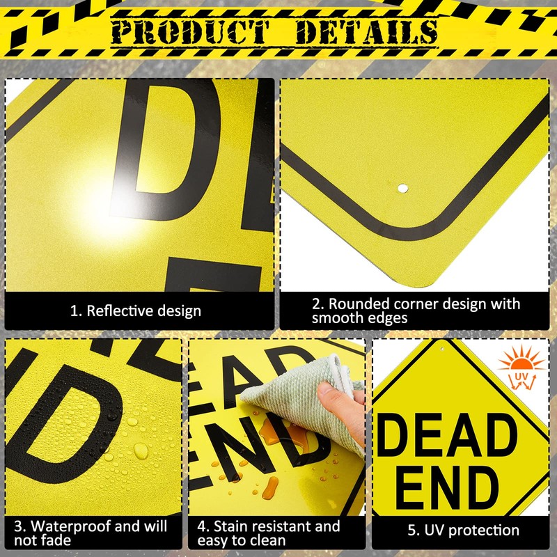 - Weather Resistant Washable: the reflective dead end sign is made of aluminum material, safe, durable and long lasting; Graphics and paint can withstand the outdoor elements and will not fade tear resistant