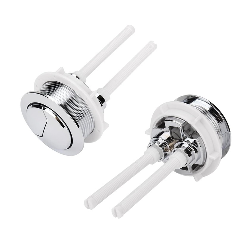 2 Pcs Dual Push Button Toilet Flush Button with Four Rods for 38 mm Toilet Closestool Cistern Replacement Accessories (Silver)