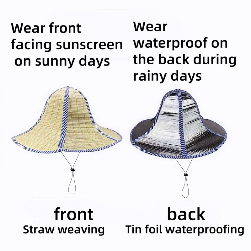 The front features traditional straw weaving for excellent sun protection, while the back is enhanced with tin foil waterproofing to keep you dry during unexpected showers.