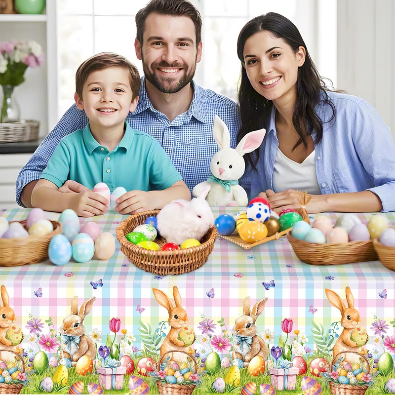 Item Name: 2 Pack 54" x 108" Easter Buffalo Plaid Table Cover - Easter Party Supplies Favors