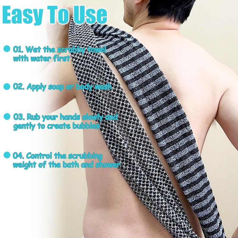 - 【Practical and Effective】Our exfoliating scrub bath towel has a rough texture that easily removes dead skin, dirt, grease and impurities, unclogs pores and improves skin texture, especially for the back and feet.
