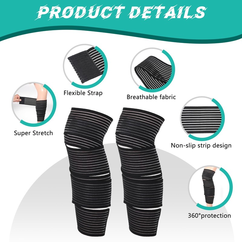 2 Pcs Extra Long Elastic Knee Wrap Compression Bandage for Women and Men, Adjustable Compression for Joint And Muscle Support, Legs Ain Relief, Stabilising Ligaments