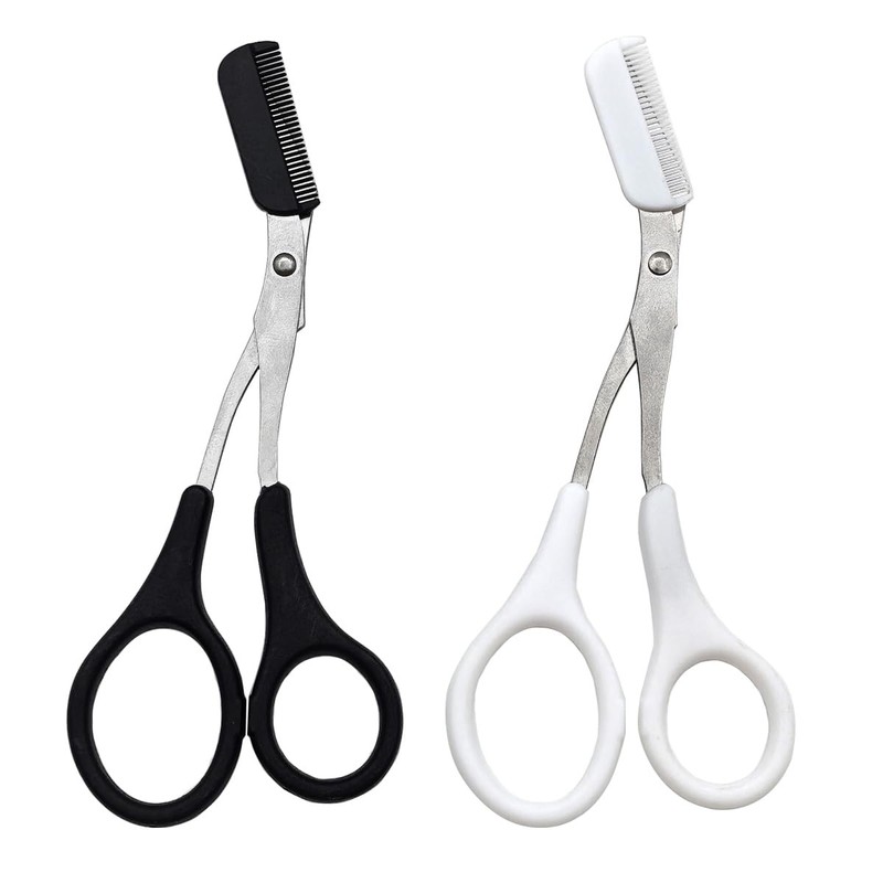 2 Pcs Eyebrow Scissors With Comb Eyebrow Scissors Scissors Stainless Steel Eyebrow Trimmer (Black White)
