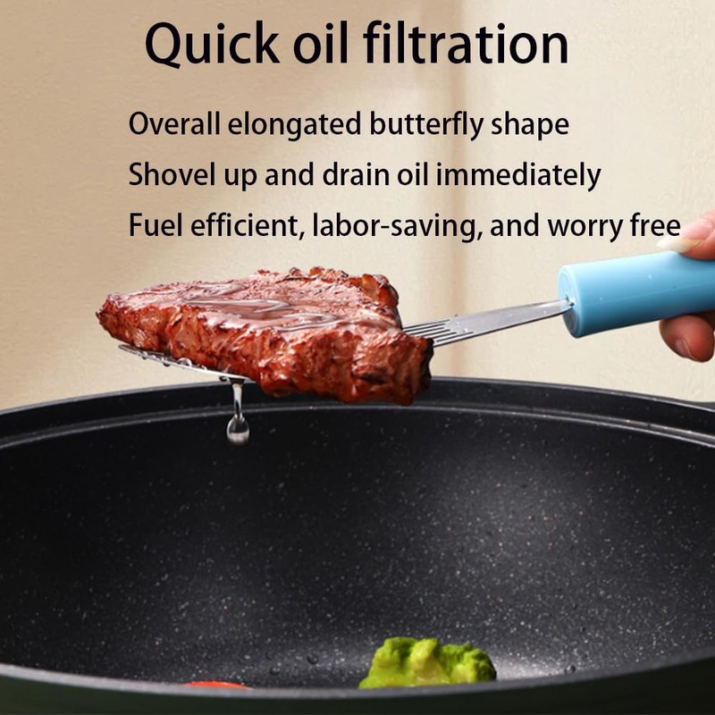 - Drain Off Oil:Five slotted design allows to drain off oil quickly, Save your time and trouble from using oil filter additionally, Keep daily meals healthy and less oil, Easy to clean with warm soap water, Dishwasher Safe