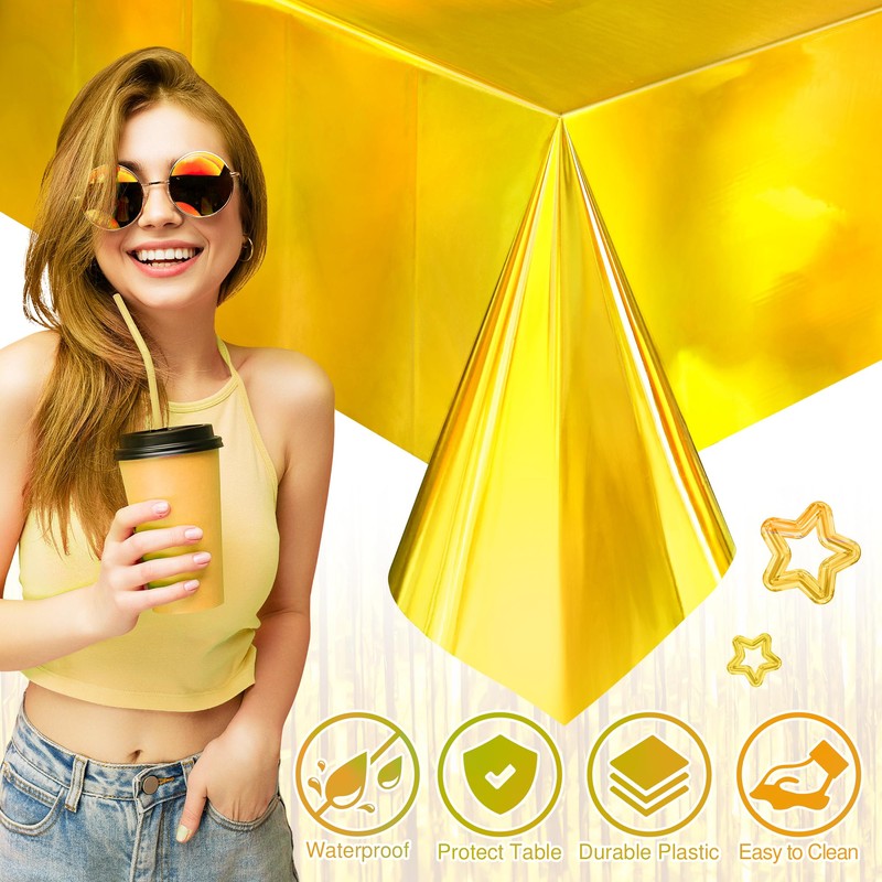 - Durable Protection for Your Tables: Crafted from high-quality and eco-friendly PE plastic, these tablecloths are sturdy enough to safeguard your tables from accidental spills and stains. The waterproof and scratch-resistant material protects surfaces while maintaining a sleek look for extended use. Your investment is protected for parties to come!