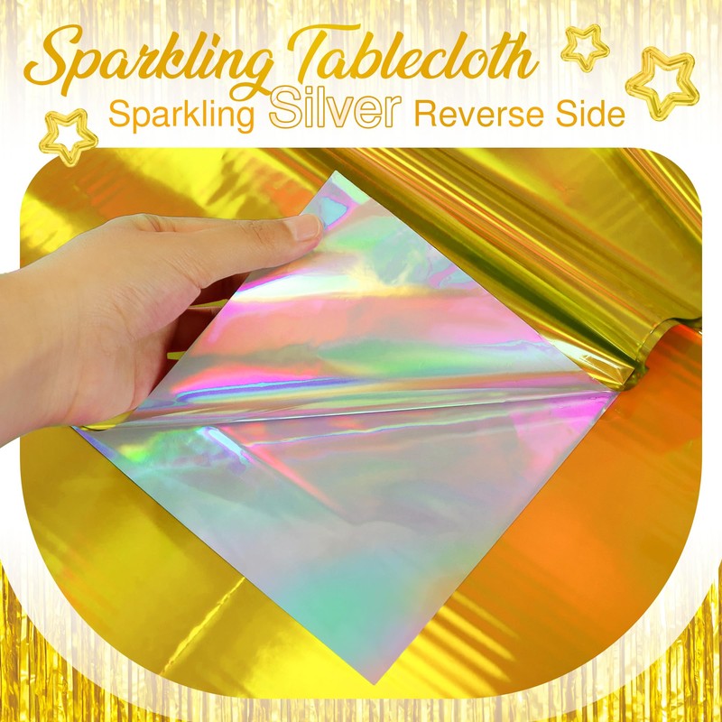 - Vibrant Shimmering Design: Show off your exquisite taste with these iridescent tablecloths that radiate beauty! Featuring an intricate laser-cut holographic pattern, they reveal magnificent rainbow colors under different light. Surprise your guests with this eye-catching optical illusion at your next event.