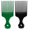 2 Pcs Hair Pick Comb Wide Tooth Lift for Hair Styling Detangling Plastic Afro Comb for Women Men (Black, Green)