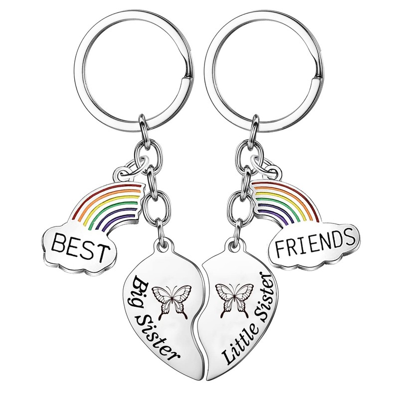 - 💕Gift for Sister: Engraved with the word " Big Sister ,Little Sister."Two half-heart shapes pieced together to form a complete heart,One keychain for Big Sister one keychain for Little Sister.