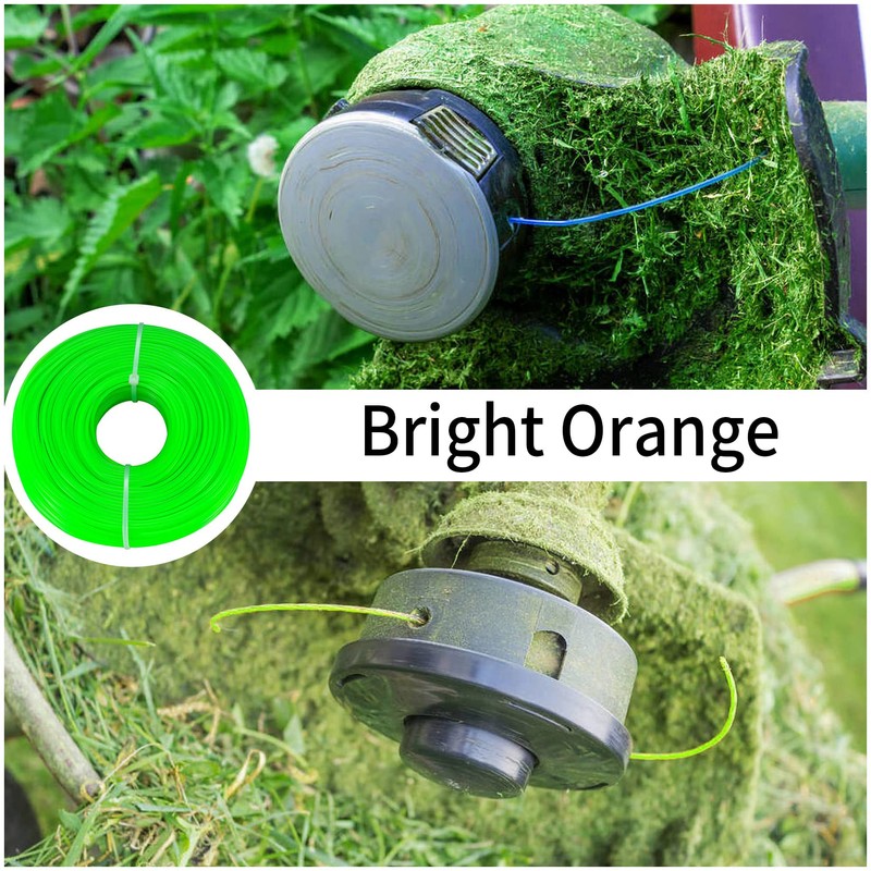 • 🌿【DIY Length】: The diameter of the grass trimmer wire is 1.6mm (0.065 inches) and the length is 100 meters. You can cut the length you need according to your needs. Bright colors make it easy to distinguish between cutting wire and grass color.