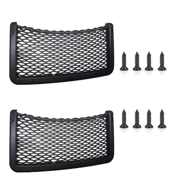 2 Pcs Large Car Net Pocket Car Universal Seat Side Storage Back Net Bag Car Mesh Net Bag Holder Car Net Pocket Organizer Framed Mesh Net Pocket Holder with Screws for Secure Fit in RV, Auto(14x5.1 in)