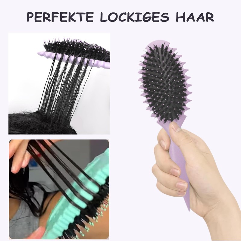 - 【Locken Bürste Set】:Das Set enthält 2 curl brush: Lila, Grün; die Locken haarbürste verfügt über Airbags, Borsten und Kantenzähne, die Haarverfilzungen sanft beseitigen können, ohne dass es zu Ziehen kommt, die ausgefallenen Haare leicht entfernen, Haarbruch reduzieren und für jede Frisur geeignet sind