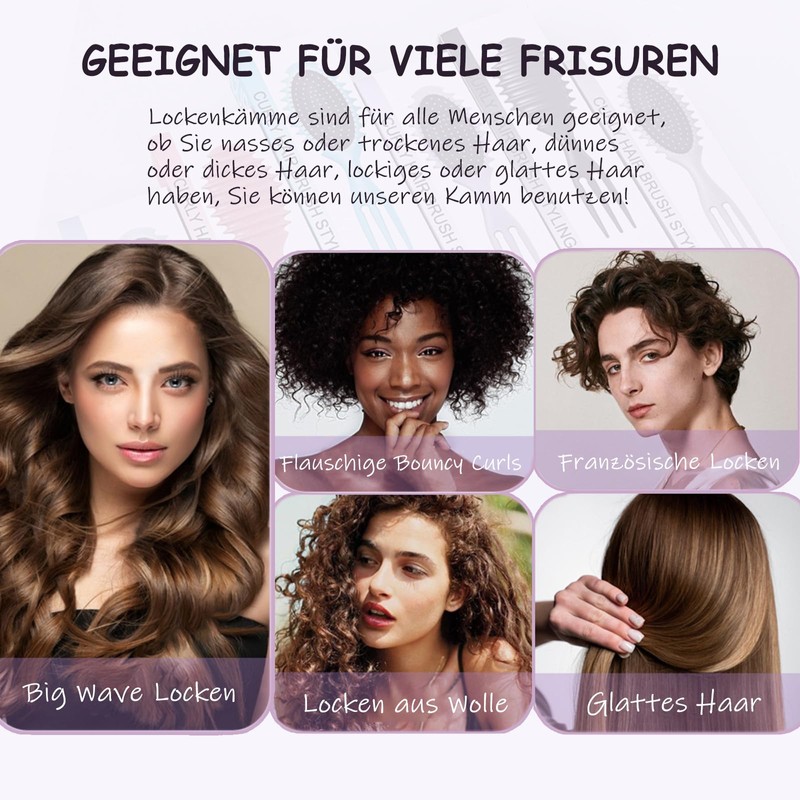Neben seiner Haarpflegefunktion eignet sich unser Kamm auch perfekt für stilvolle Locken. Sie können es verwenden, um eine Vielzahl von trendigen Lockenfrisuren für einen fesselnden Look zu erzielen. Vielseitige Anwendung zum Auftragen von Produkten, Entwirren oder einfach zum Auffrischen Ihrer Locken.Darüber hinaus hat die Bürste eine spezielle Form, die auch als ideales Werkzeug für perfekt gerade, getrennte Linien in Ihrem Haar dient. Sanfte Borsten stoppen Bruch und Schäden an allen Haartypen und Lockenmustern.