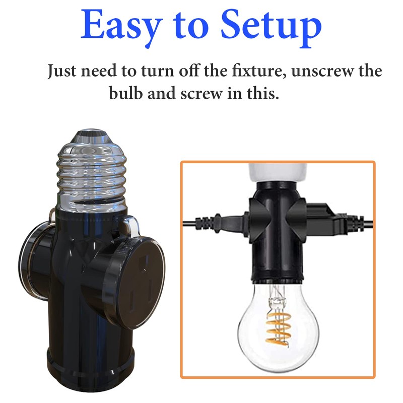 - 【Wide Range of Application】When there is no extra plug available, just unscrew the bulb and screw in this socket outlet adapter, get a 2/3 prong plug 3 in 1 socket plug adapter to use. This bulb outlet adapter can be used to garage, workshop, basement, porch, patio, Halloween/Christmas Outdoor Lights, security cameras, door bell, etc.