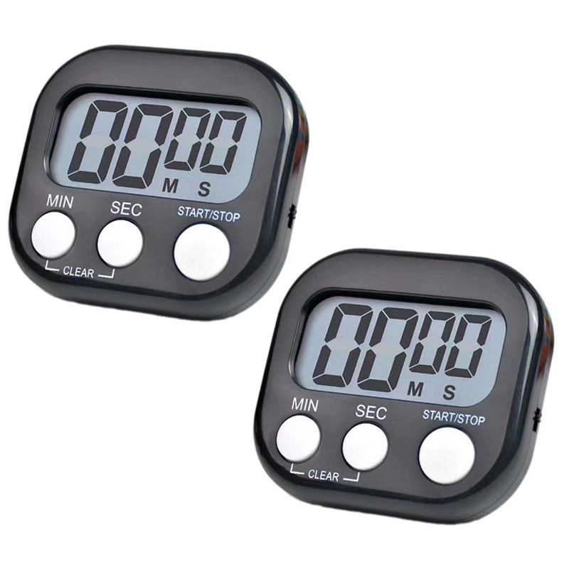 2 PCS Magnetic Kitchen Timer, Big Digits Large LCD Screen Display Timer, Digital Clock Countdown Stopwatch for Cooking, Study, Work, Exercise (2 PCS Black)