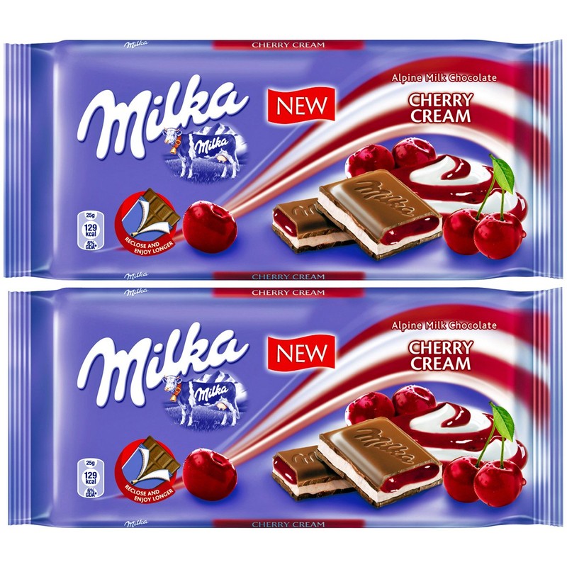 2 Pcs Milka Alpine Milk Chocolate Bars Vanilla Cherry Cream