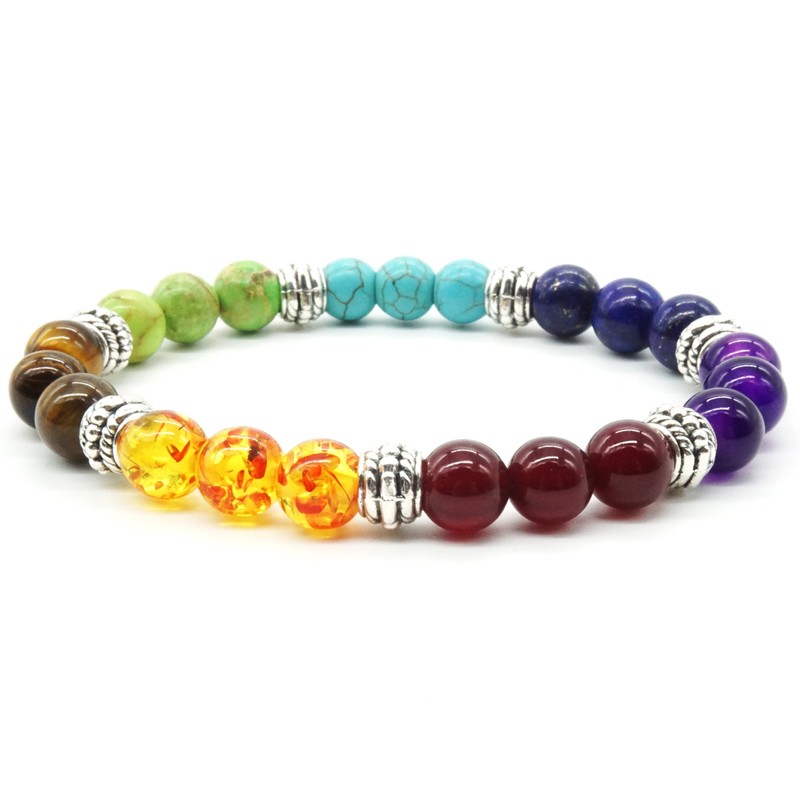 2 pcs Natural Tiger Eye Stone Bracelet Yoga Men and Women Elastic Bracelet 7 Chakra Stretch Bracelet