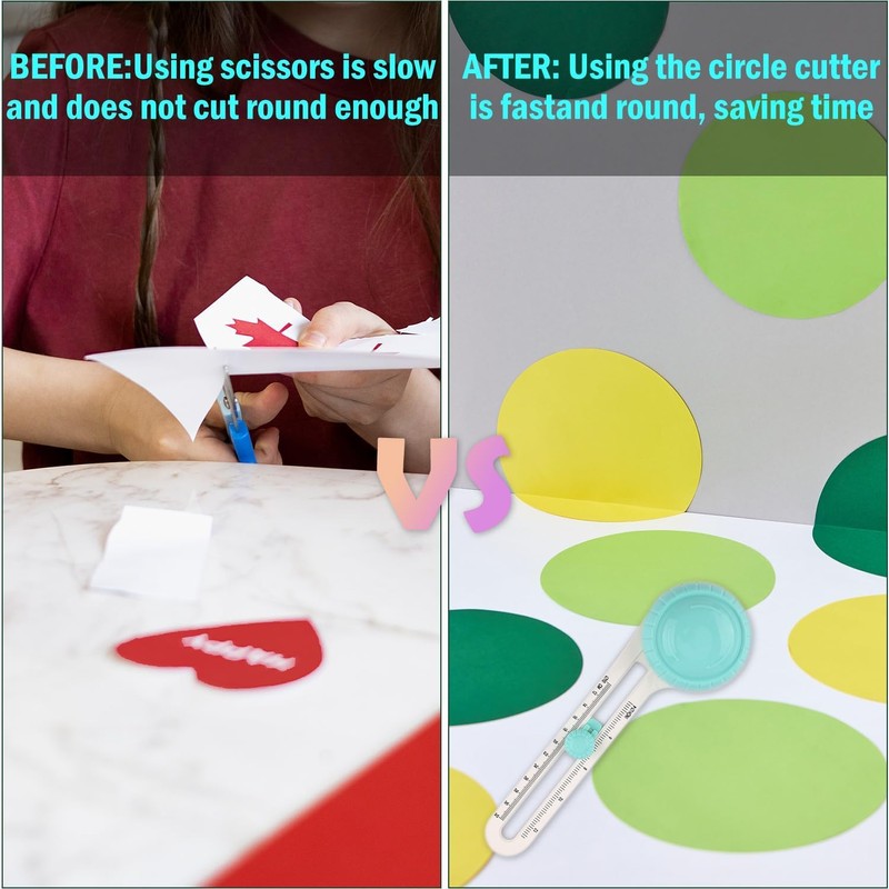 - 🌎[Easy to Operate & Simple to Use] Circular paper cutter is easy to operate and can be cut smoothly. Just set the size by turning, sliding and locking the knob, and fix it to the position corresponding to the size you want. Then place the cutter on the paper, rotate it, and a perfect circle will be cut. Note: It is recommended to use the circular cutter with a cutting board.