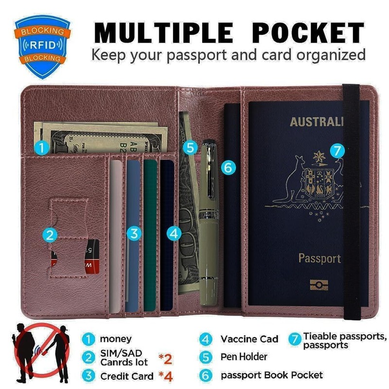 - HIGH QUALITY:Premium synthetic leather passport holder wallet provides built in blocking security against personal account information theft and will fit easily in your coat, purseor luggage thanks to its slim profile.