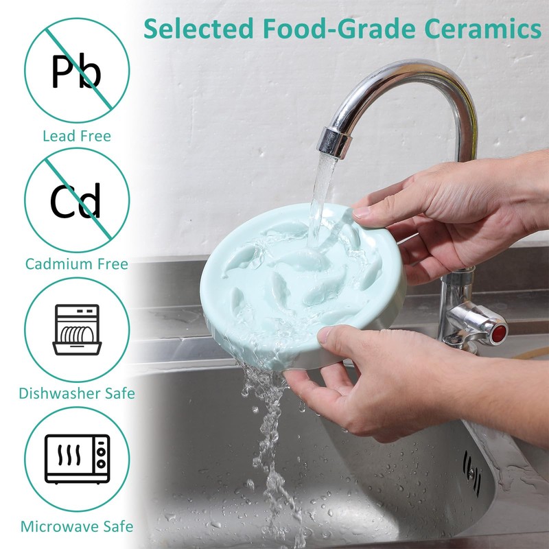 - 【Suitable for Small Pet】This cat dish is about 6.3 inches in diameter and 0.94 inches in height, which is a perfect size for most cats and small dogs. The slow cat feeder is easy to carry and store and is a practical addition to your pet's feeding accessories