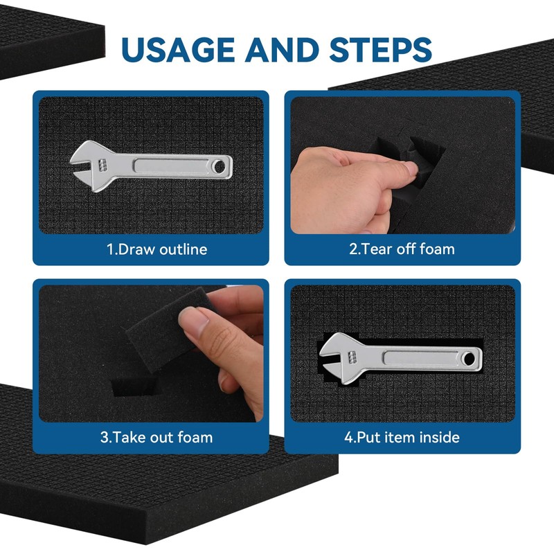 - MATERIAL AND FEATURE: The pick apart foam insert is made of high quality foam, which is lightweight, soft and elastic, odorless, perfect for storing tools, electronics, fishing tackle, arts and crafts items, and more. Appropriate size and sufficient quantity can protecting your precious items from being damaged.