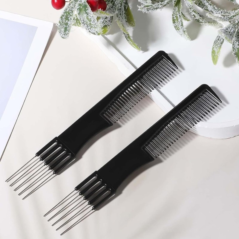 2 Pcs Pick Kämme für Frauen, Doppel-Kopf Teasing kamm mit Metall Zinken Lift kamm Salon Teasing zurück Kamm feiner Zahn für Friseur Styling Salon Sektionierung Hervorhebung.