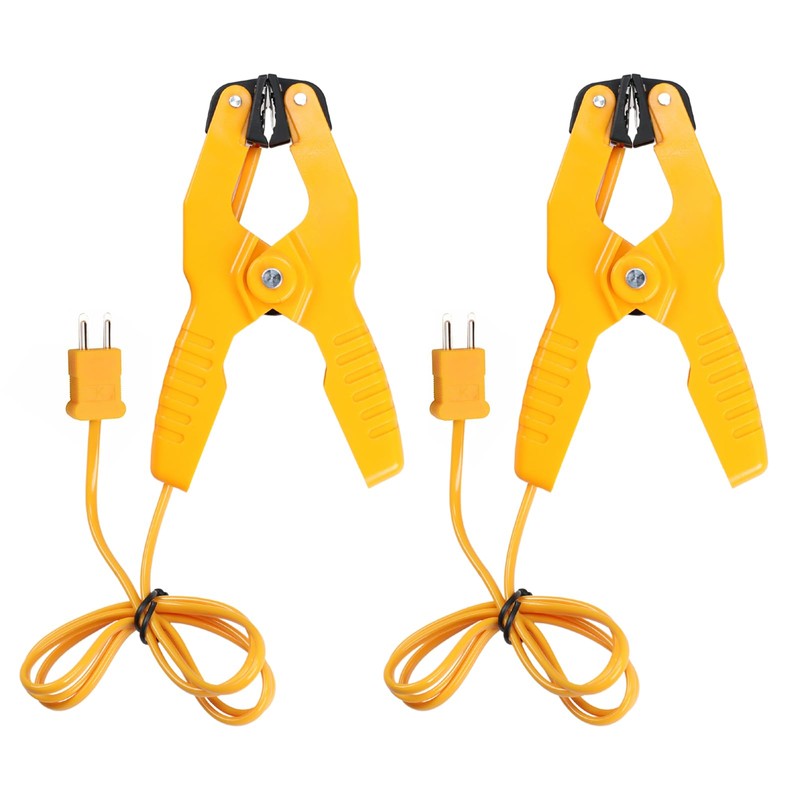 K-Type Thermocouple Temperature Clamp for HVAC Systems, 2 pcs Pipe Clamp Sensor with Banana Plug Adapter for Multimeters, Measures -40~392℉ (-40~200℃)