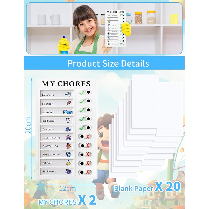 - Easy To Use: Our chore chart memo boards measure the right size, perfect for carrying around, and has an open-hole design in the back to hang it anywhere. Right slider can be easily moved, you don't need a marker pen to mark cross or tick, and you can just move the buttons, very convenient.