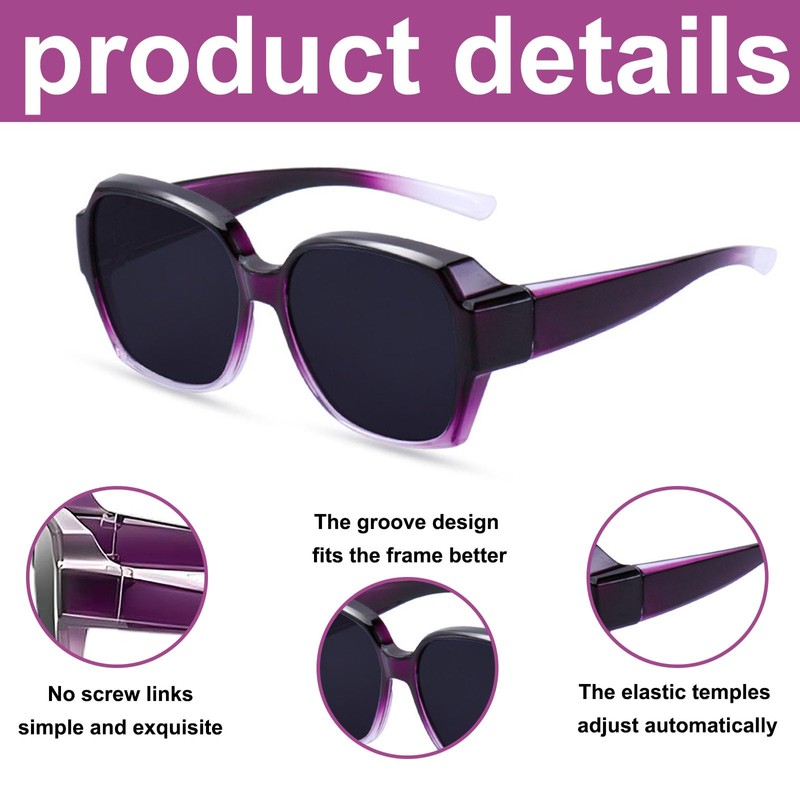 - [Over Glasses Sunglasses Womens]: Designed to fit comfortably over prescription glasses, these sunglasses provide a convenient solution for those who need extra eye protection without removing their regular glasses; The lightweight design ensures a comfortable fit for extended wear.