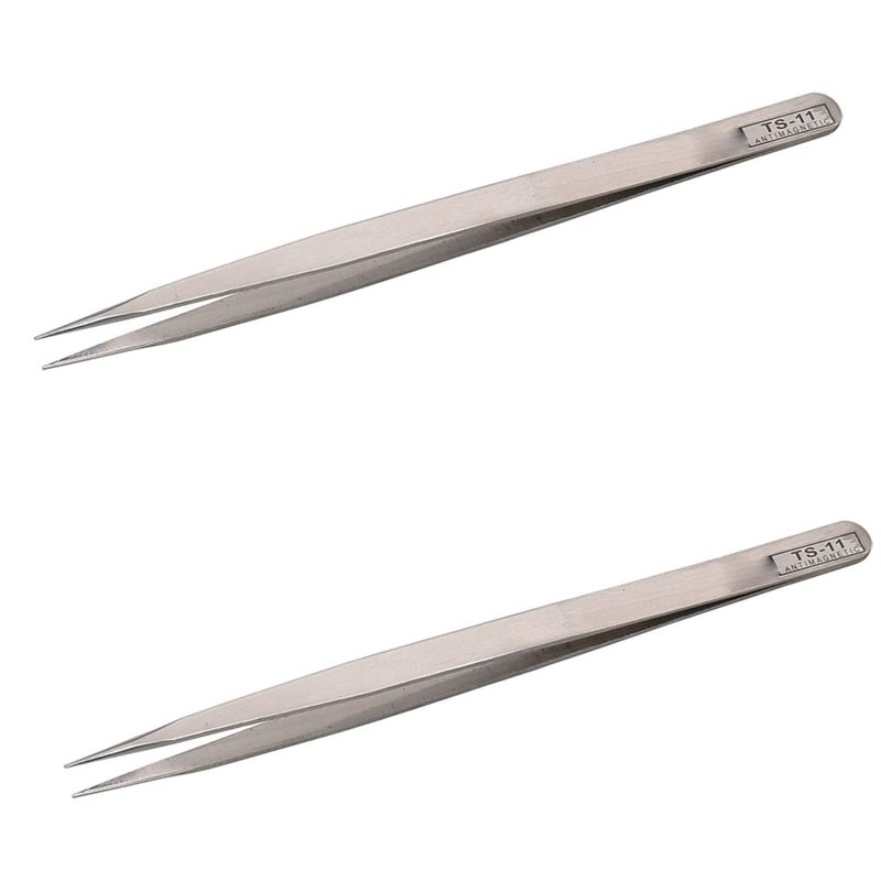 2 Pcs Precision Tweezers Set, Stainless Steel Fine Tip Tweezers for Model Making, Electronic Repair and DIY (TS-11)