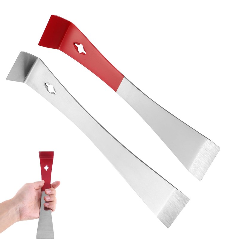 - 【Wide Application】: Our metal pry bar is perfect for pulling apart walls, prying off moldings, tiles, and slats, and removing baseboards and trims. It is also a great tool for nail pullers, hive tools, hex sockets, bottle openers, or as a beekeeping scraper