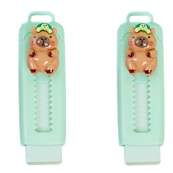 2 Pcs Retractable Pencil Eraser Cute Capybara Sliding Push Pull Pencil Eraser for Drawing Painting Writing