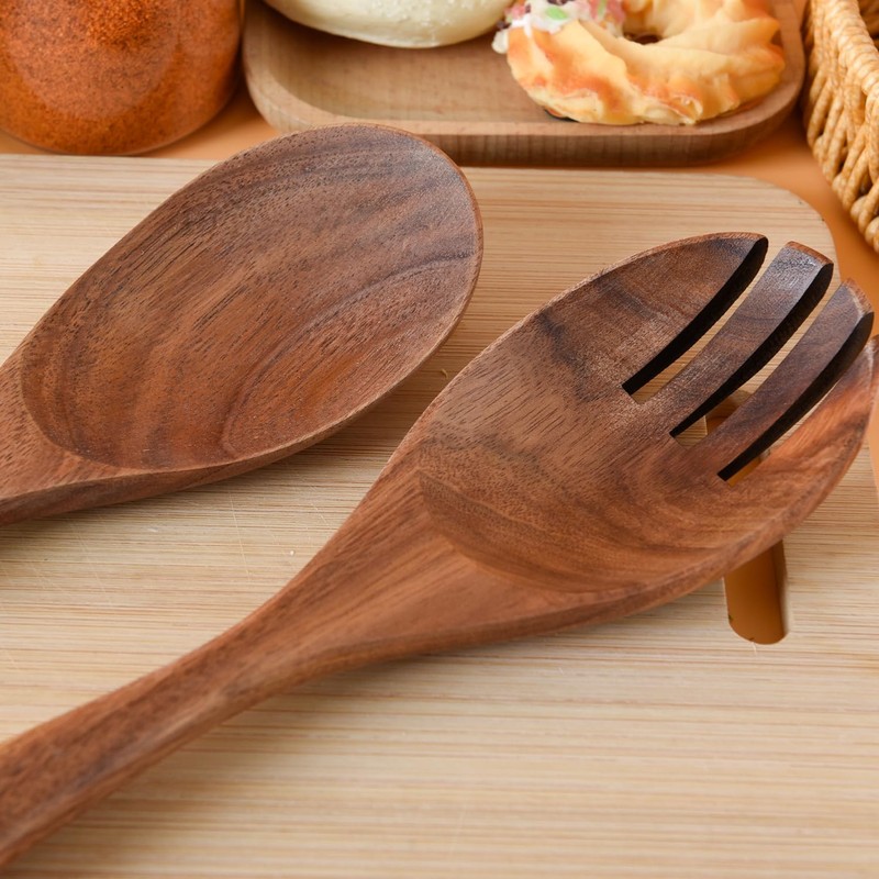 - The ergonomic design of the spoon and fork makes it simple to toss salads and mix ingredients. The long handles provide a comfortable grip, allowing for smooth and efficient serving, whether you're preparing a single dish or a large salad bowl.