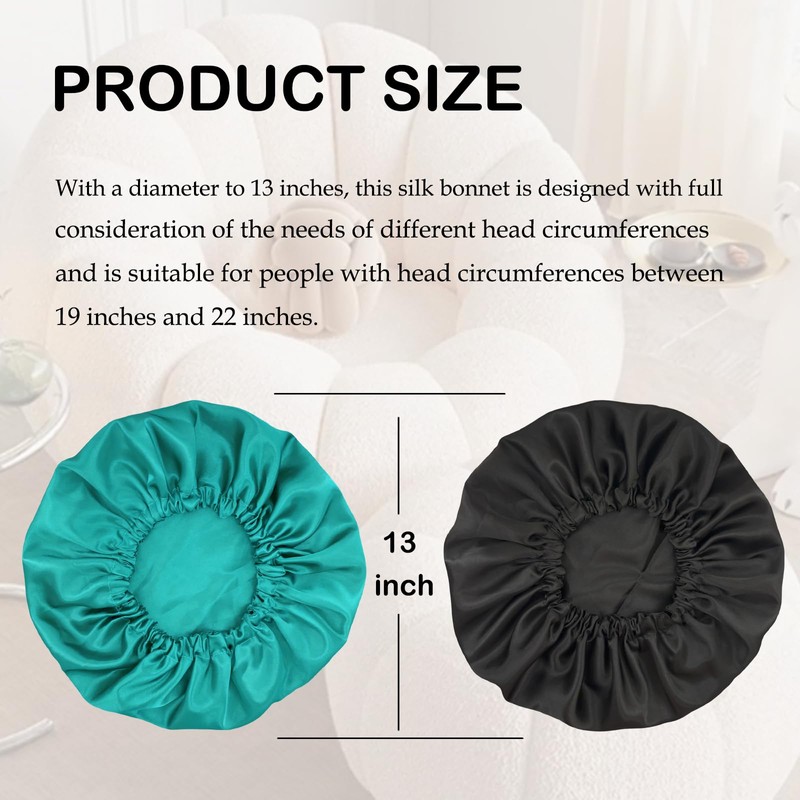 - With a diameter to 13 inches, this bonnet is designed with full consideration of the needs of different head circumferences and is suitable for people with head circumferences between 19 inches and 22 inches. This size range covers the head circumference of most adult women, ensuring a wide range of applicability.