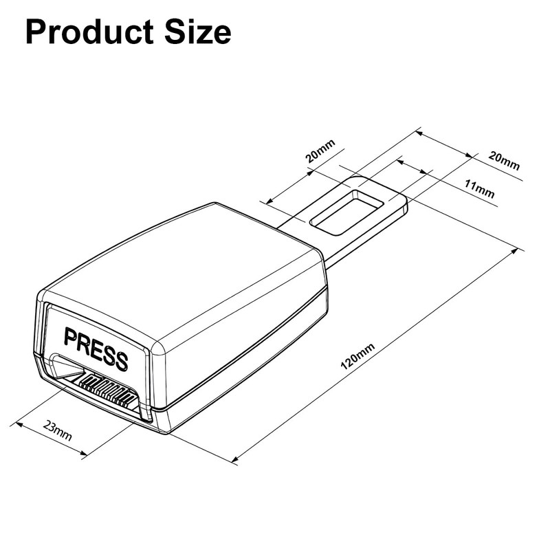 - [Seatbelt Extender Size] - Our seat belt extender is 4.7 inches in length, with a metal tongue width of 2.2 cm and a length of 4.5 cm.