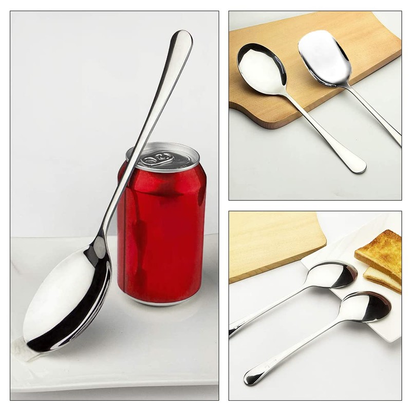 • Material: The serving spoons large are made of stainless steel, a material that is highly hard, corrosion-resistant and rust-resistant, so there's no need to worry about your buffet big spoon rusting, corroding or losing their shine