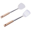 2 Pcs Spatula and Fried Shovel, 14 Inch Stainless Steel Turner with Wooden Handle for Cooking and Fried (2)