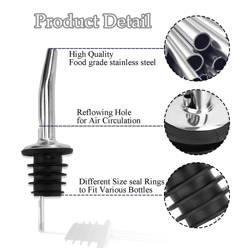 - Speed Pourers for Spirits: Humanized design, bottle pourers is designed to connect the lip portion has a gas nozzle guide, good sealing effect. The speed pourers are easy to remove and replace, simply hand wash in soapy water and you'll be ready to use the pourers for spirits again.