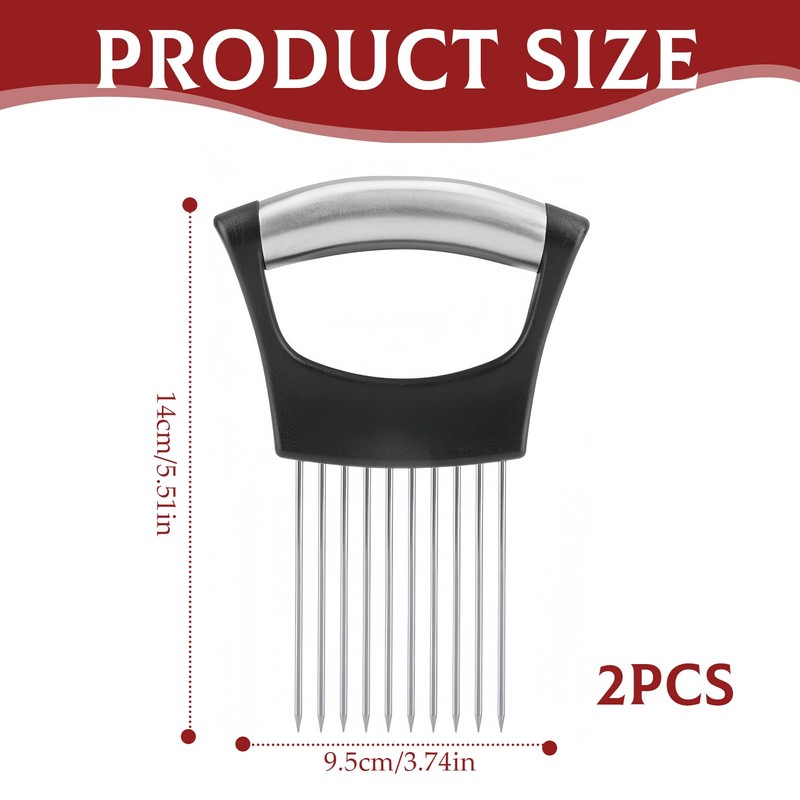 - Package:comes with 1 piece onion slicer ,designed 10 stainless steel forks under the handle,which is easy to fix onion and to cut.