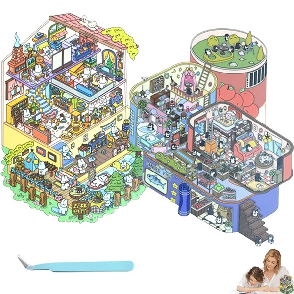 2 PCS Sticker Therapy Store, Sticker Therapy, 3D Sticker Scene, Scene Stickers 3D Make for Fun Cute 3D Stickers, Forest Tree House, Canned Apartment, with Tweezers (Super Large Edition)