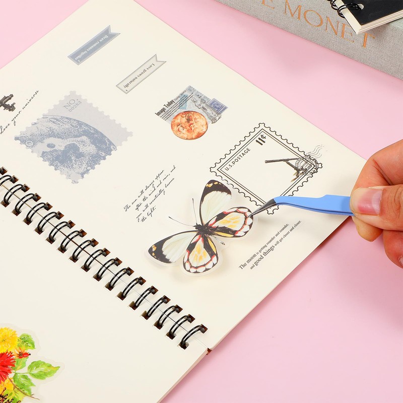 2 Pcs Sticker Tweezers, Craft Tweezers Scrapbooking Tools Precision Tweezer Blue Cute Crafting Tweezer for Stickers Lashes Electronics Scrapbooking (Blue)