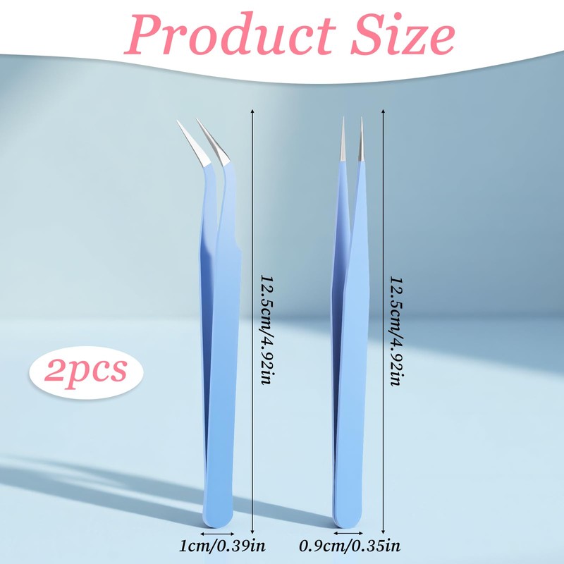 - Professional 2-Piece Precision Tweezer Set in Blue: Upgrade your toolkit with this premium stainless steel tweezer duo featuring one straight-tip and one curved-tip design. Perfect for everything from delicate eyelash applications to intricate electronics repair, these 4.92-inch (12.5cm) tweezers with comfortable handling