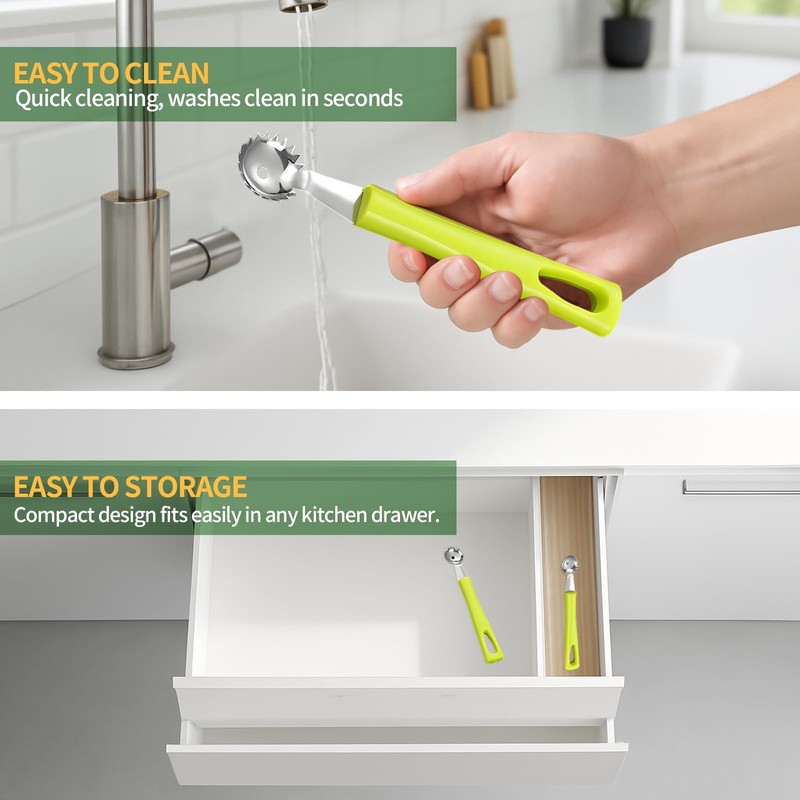 • -Multi Use:Perfect for more than just tomatoes and strawberries. Great for hulling cherry tomatoes, prepping kiwi or small peppers, or scooping melon balls to create stunning fruit displays. A versatile must-have for any kitchen.