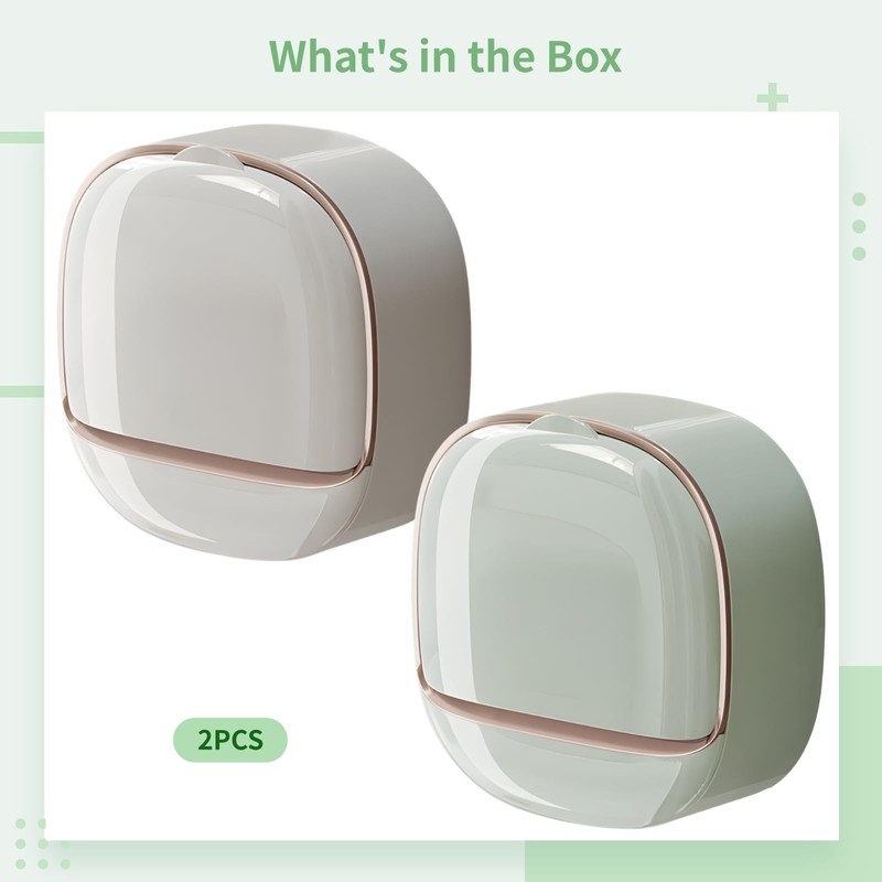 2 PCS Wall Mounted Soap Dish with Lid, Shower Soap Holder, Waterproof and Dustproof, No Drill Installation, Compact and Space Saving, Includes Closure, Ideal for Bathroom Use