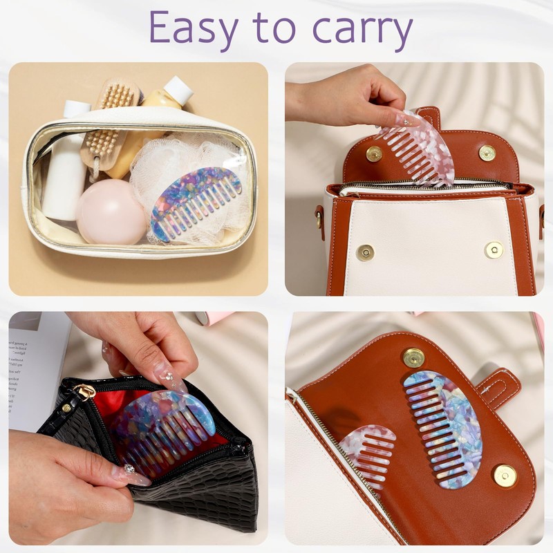 • 【Suitable Gift】This travel comb is practical and convenient, easy to hold, and can add elegance to your hair. You can share mini comb with friends and family. This pocket comb set can be used as a gift for birthdays, anniversaries, Mother's Day, Valentine's Day, etc.
