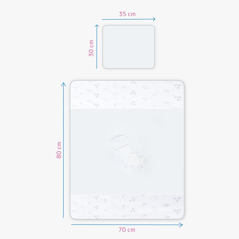 2-Piece 100% Cotton Duvet Cover and Pillowcase 70 x 80 cm for Baby Cot Bed - Moon (White)